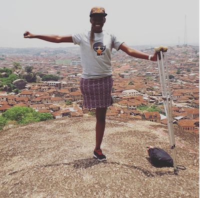 A lovely physically-challenged lady, Adenike Oyetunde, has got herself trending on social media platforms after her first visit to the famous Olumo Rock in Abeokuta, Ogun state. Sharing the photos on her social media page, the excited lady wrote; If only you can understand what it means for me...I did it!!! This year, I BREAK everything in my mind.
