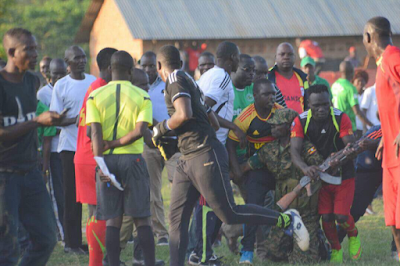 Pandemonium struck at a football game in Uganda between Onduparaka v Saints. According to online reports, the host struck a 95th winner and a soldier attached to Saints wanted to cock his gun. Football fans, players and even officials had to rush the soldier as they seized the gun and remove the magazine.