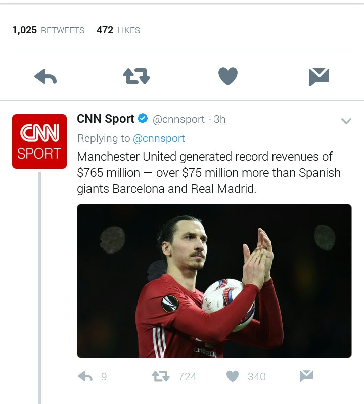 United generated record revenues of $765 million — over $75 million more than Spanish giants Barcelona and Real Madrid — aided by an unprecedented domestic television deal, global commercial reach and an Adidas kit sponsorship arrangement worth a reported $90 million per year.