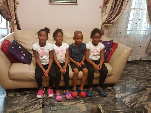 Nigerian twitter user @sofiewoozie posted photos of her adorable quadruplets...three girls and a boy, who turned seven years Wednesday. Happy birthday to them.