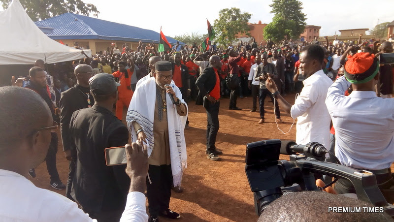 A visit by the leader of the pro-Biafra group, Indigenous People of Biafra, Nnamdi Kanu, on Monday visit to Abakaliki, brought the Ebonyi state capital to a halt as thousands of residents left their businesses to catch a glimpse of the controversial separatist leader.
