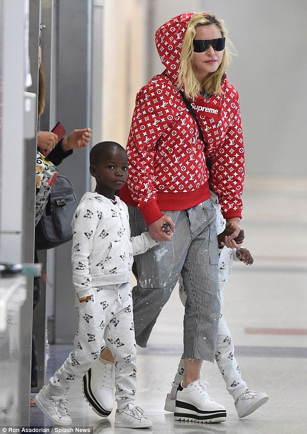 The star held on to her little girls Esther and Stella, while her 20-year-old daughter Lourdes walked behind.