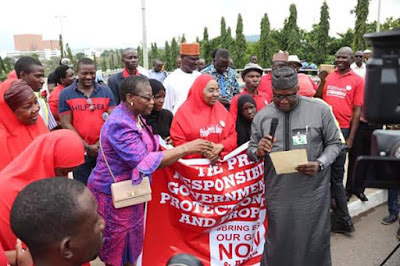 BBOG led by Oby Ezekwesili today stormed the Villa over rising incidence of Boko Haram and inability of FG to release the remaining abducted Chibok Girls.Addressing them,Senator Ojudu said...