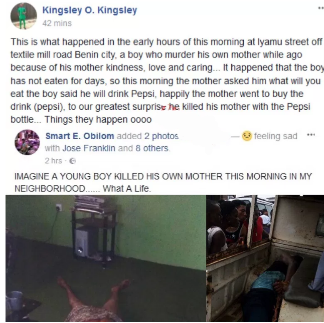 A young boy in Edo state this morning allegedly stabbed his own mother to death with a bottle.