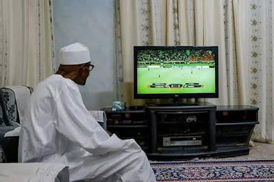 President Buhari pictured watching Cameroon Vs Nigeria match yesterday at his Daura home