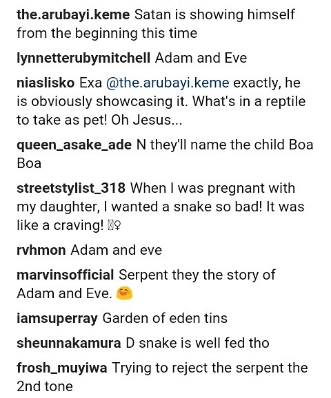 This couple's maternity shoot with this huge reptile has got tongues wagging as media users are not finding it creative enough.